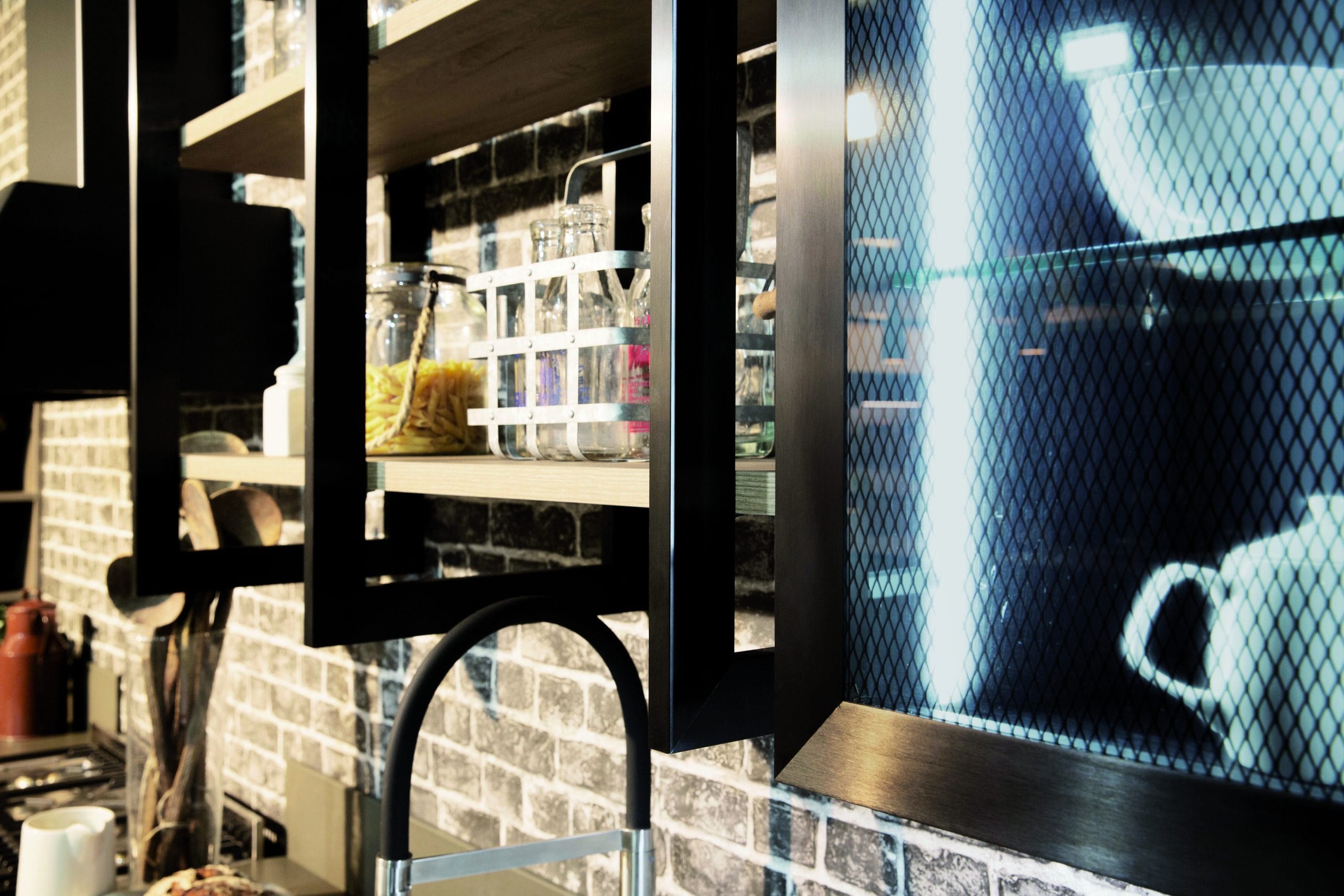 Het gebruik van verschillende materialen kan rommelig ogen. Maar wanneer je de juiste keuze maakt, versterk je juist het effect dat je wilt bereiken. Deze keuken is het ultieme voorbeeld. De gezelligheid en nonchalante sfeer worden versterkt door hout, glas, zwart en veel open opbergruimte.